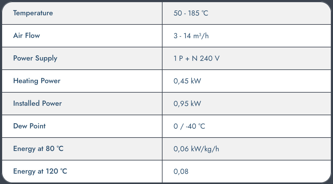 With the DW14 dehumidifying dryer, your plastic stays dry, your filament stays high quality, and your extrusion goes smoother.
